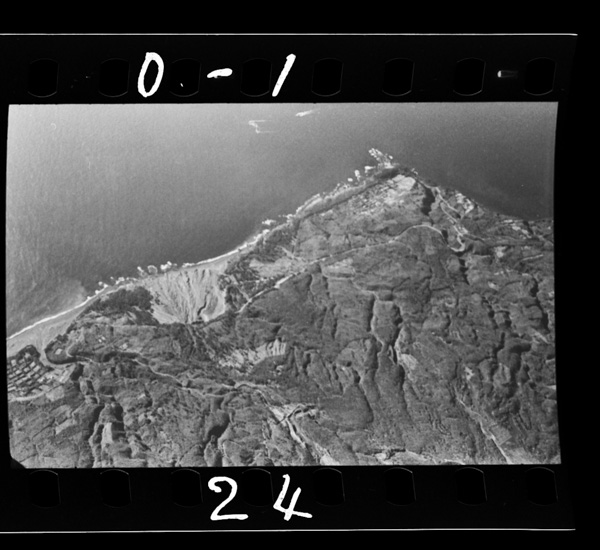 絵鞆半島の西岸,ハルカラモイ,マスイチ浜の断崖.右に太平洋,左が港