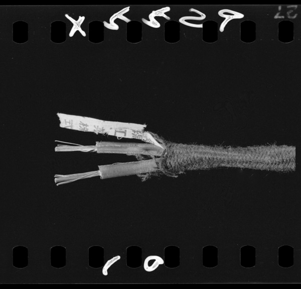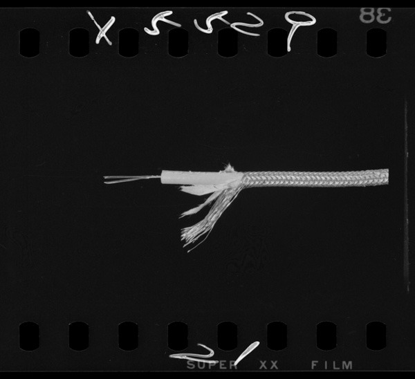 シールドコード.ラジオなどに使う特殊線で外側の金網をアースして線に出入りする電波を遮断する