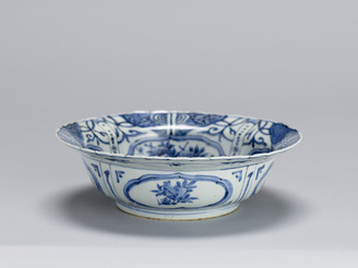Lobed bowl with peony, pomegranate and horsetail