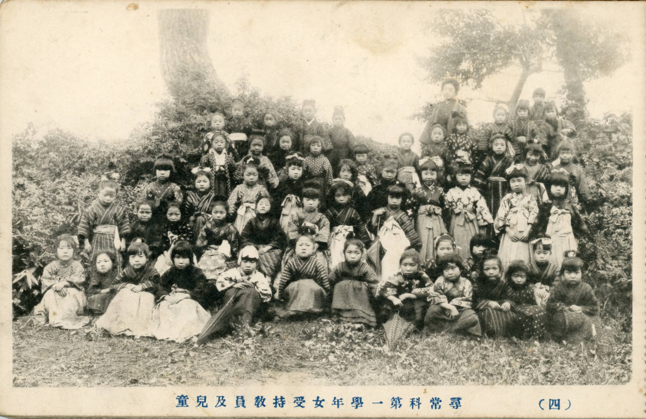 Women and children of a Japanese family in Uyeno park, during the Cherry-blossom festival, Tokyo, Japan