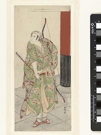 Acteur Ichikawa Monnosuke II met pijl en boog
