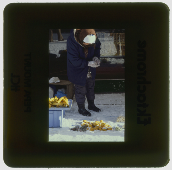 〔右〕洋ばしでホヤの基部の口を広げ所定の寸法に仕上げる 難波克一さん