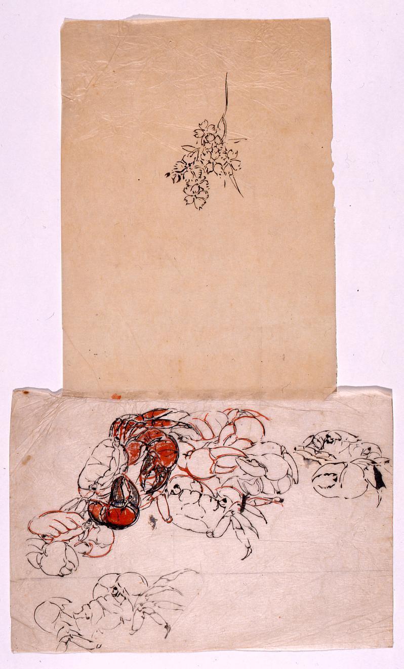 下絵 蟹,花