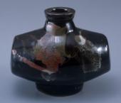黒釉三色打薬扁壺