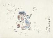 (鞠つきをする二人の少女)
