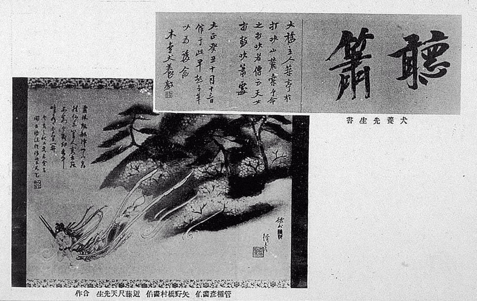 犬養先生書・管楯彦畫伯 矢野橋村畫伯 近藤尺天先生 合作