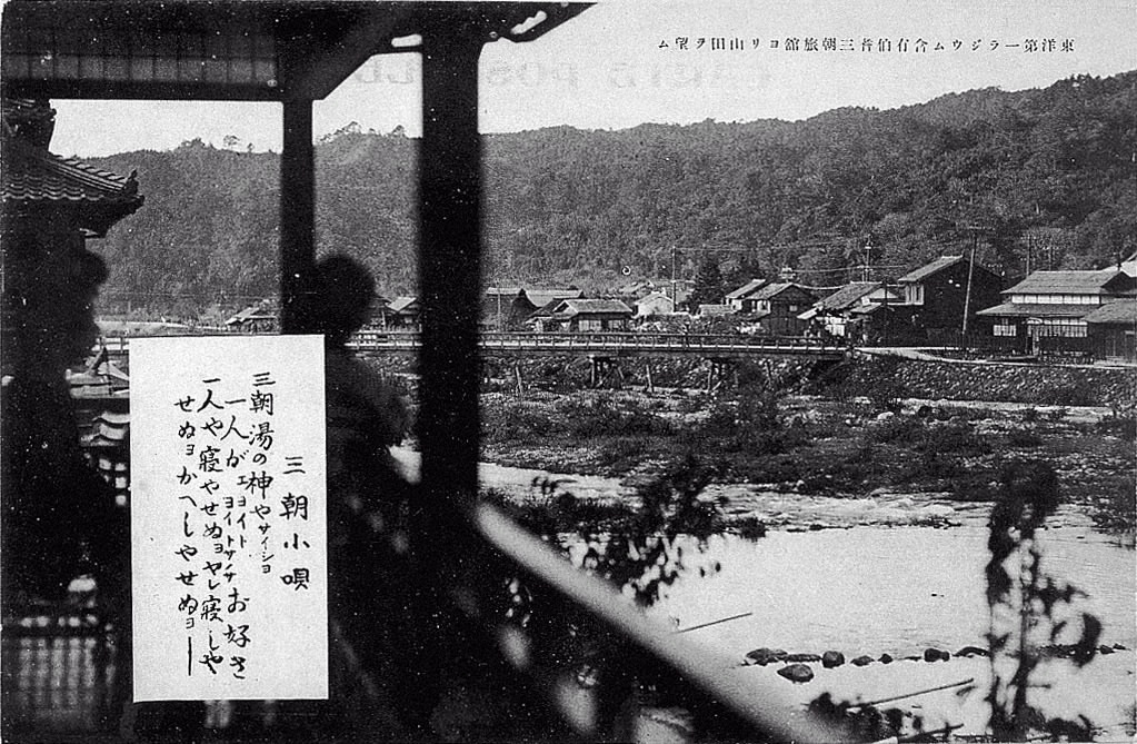 東洋第一ラジウム含有伯耆三朝旅舘ヨリ山田ヲ望ム