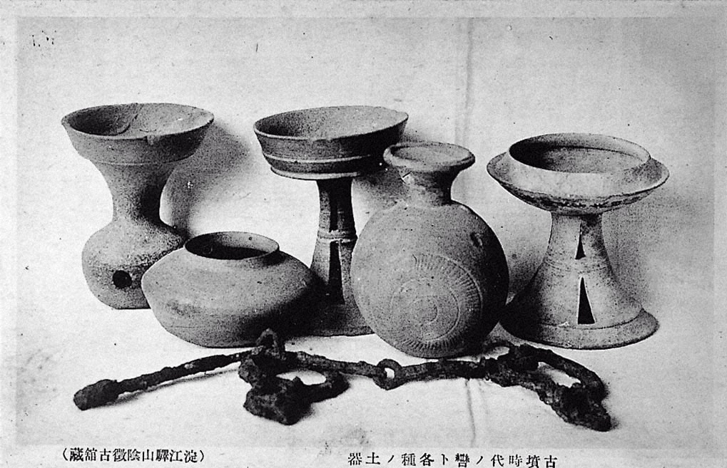 古墳時代ノ轡ト各種ノ土器(淀江驛山陰徴古舘藏)