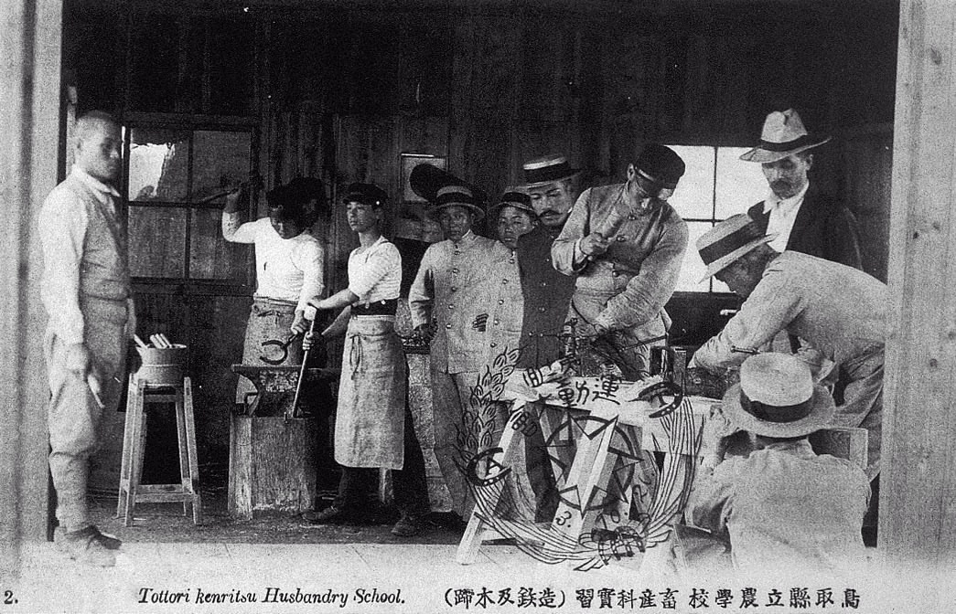 鳥取縣立農學校畜産科實習(造鉄及木蹄)