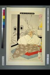 「(新形三十六怪撰)」 「(清盛福原)に(数百の)人頭を見る図」