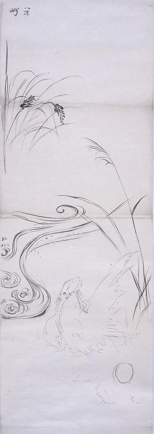 粉本 光琳写 波に双鷄