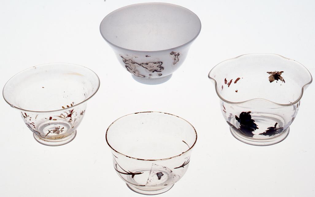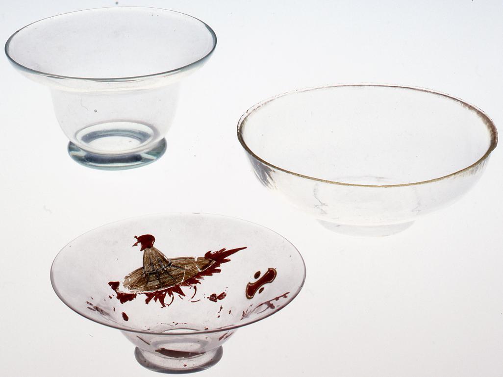 無色絵入り(絵跡あり)宙吹き盃