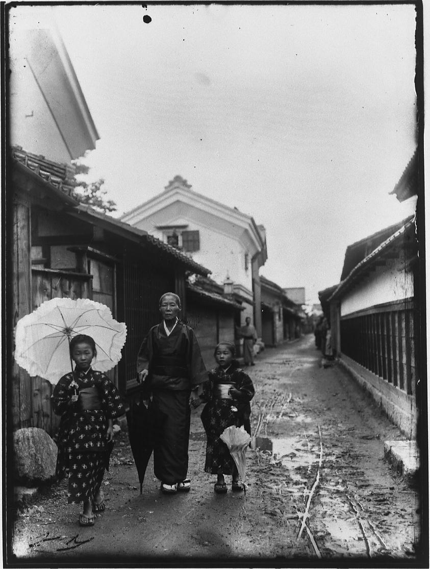 洋傘を持つ少女と老婆