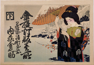 引札類 雪に傘をさす美人