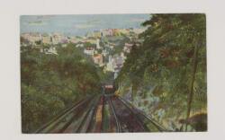 (武州高尾山登山電車)登山電車鉄橋ヲ進行ノ景