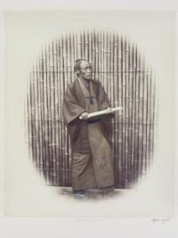 Studioportret van een wijn offerende Shintopriester