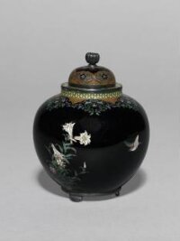 Globular Covered Incense Container (Kōgō) with Decoration of Flowers and Butterflies