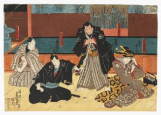 Bando Hikosaburo V, Iwai Shijaku II, and Ichimura Kakitsu IV (?) in an Interior Scene