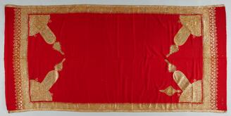 死者の覆い布 赤カシミヤ地ペイズリー花文様